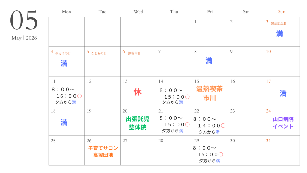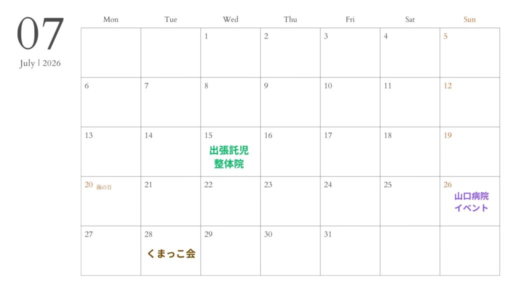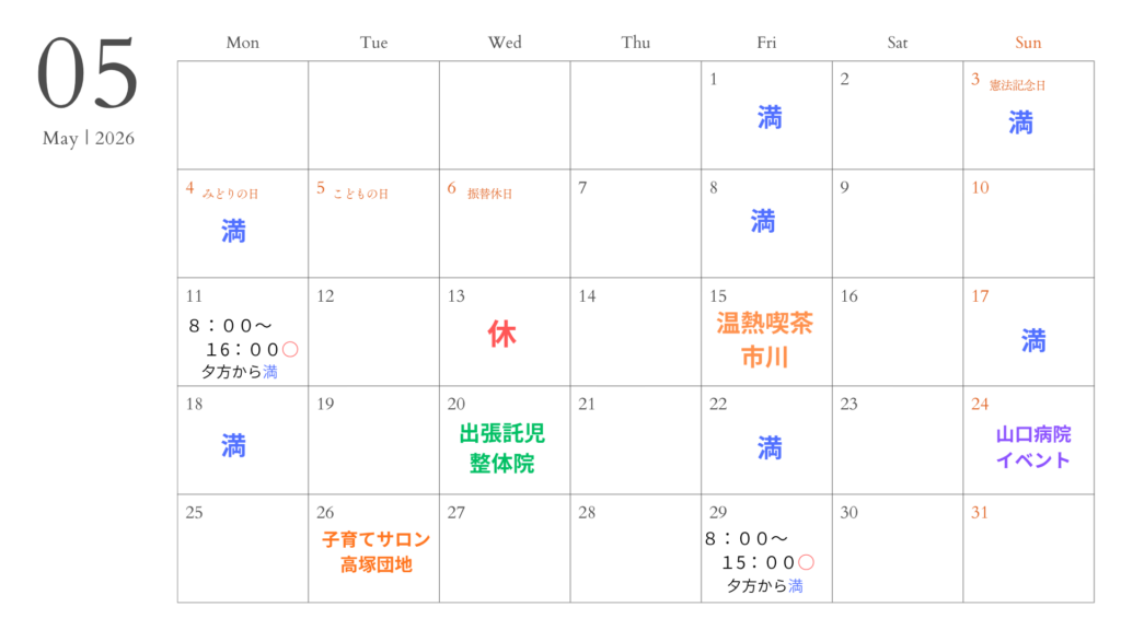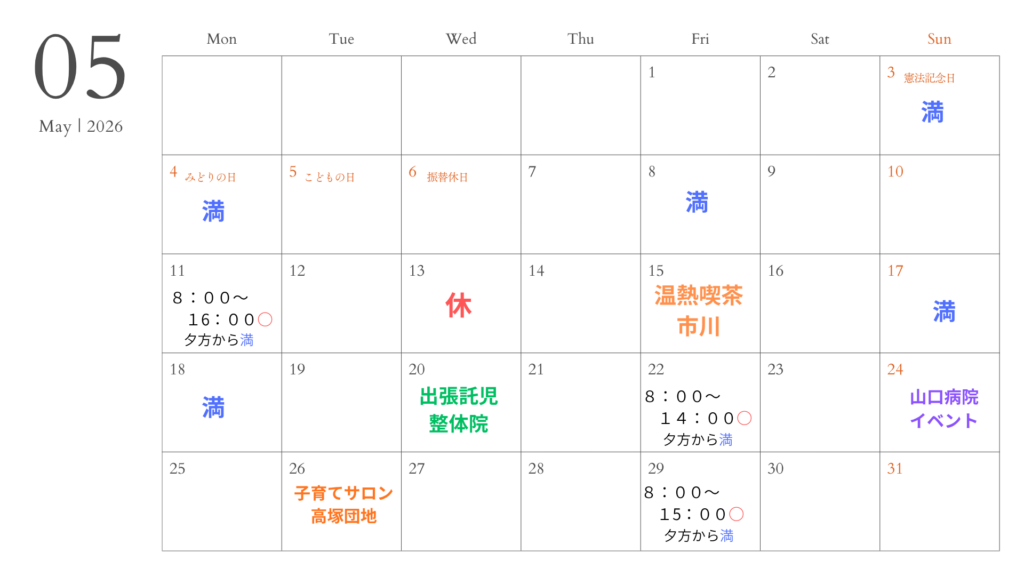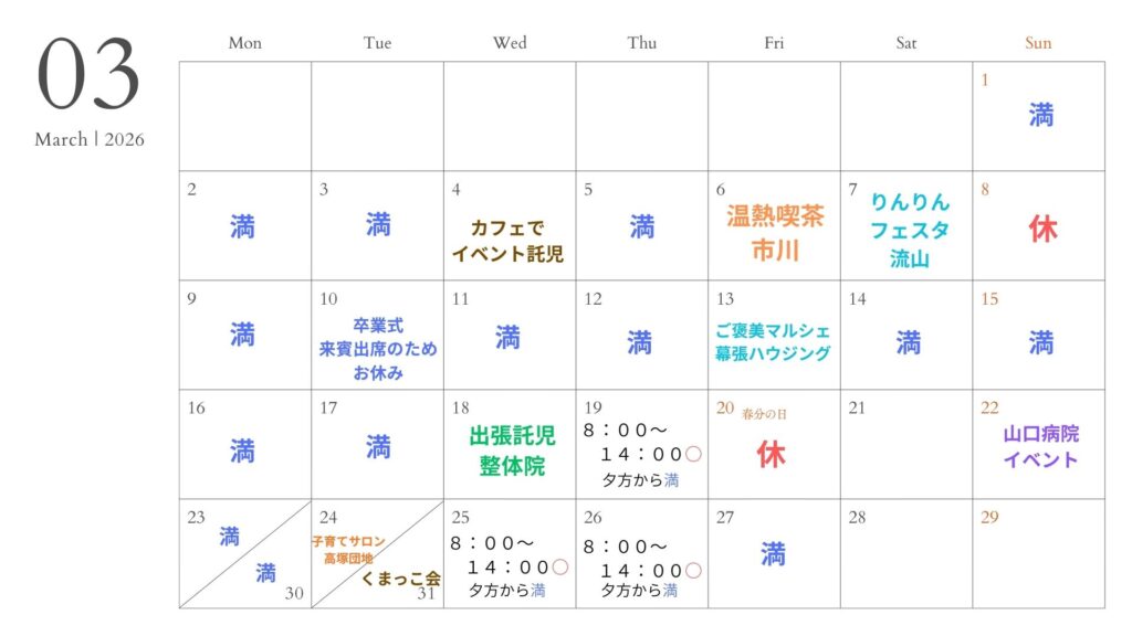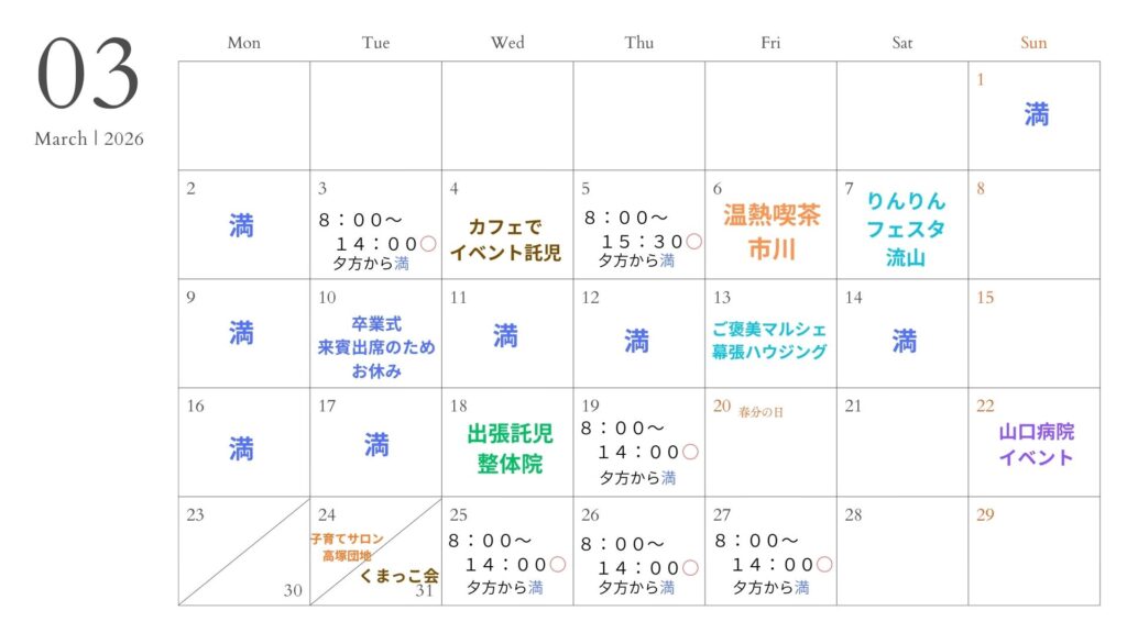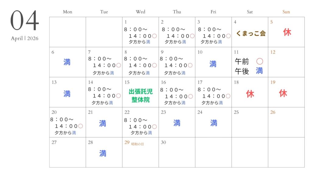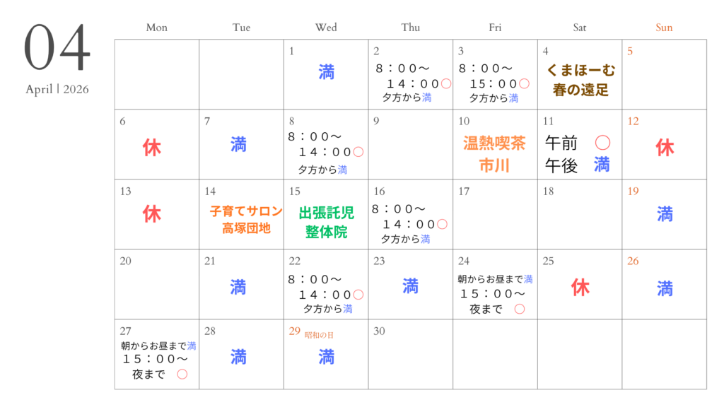 ・空欄は終日空いております。また、埋まっている場合でもキャンセルが出ていることもありますので一度お問合せください🐻